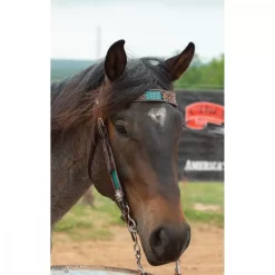 Multi-toned leather matches with any tack and coat color, and beautifully accents the inlays on this headstall. Inlays are cut to the shape of the filigree for a polished look.