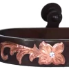 Engraved floral trim, 1″ band, 2-1/2″ shank, and 1-1/4″ 16 point rowel and brass buttons.