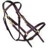 Doubled and stitched 5/8″ fine import leather with stained edges. Complete with reins, curb, and bit. 1/2″ throat.