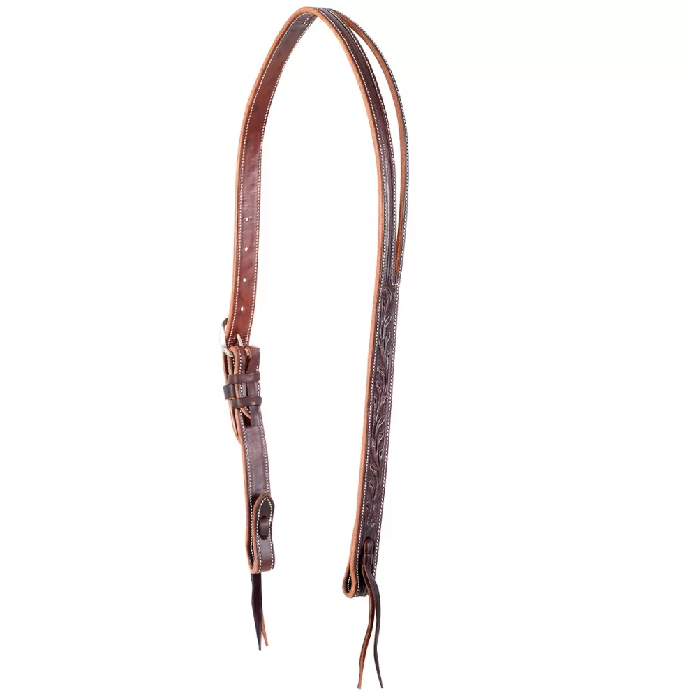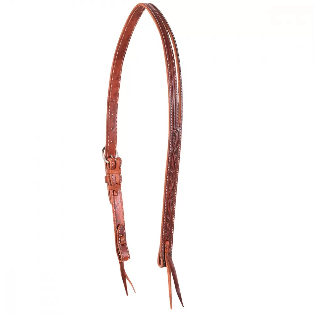 The Martin Saddlery Ranahan Split Ear Floral Headstall features floral tooling, split ear design, stainless steel buckles and neck tie knots.