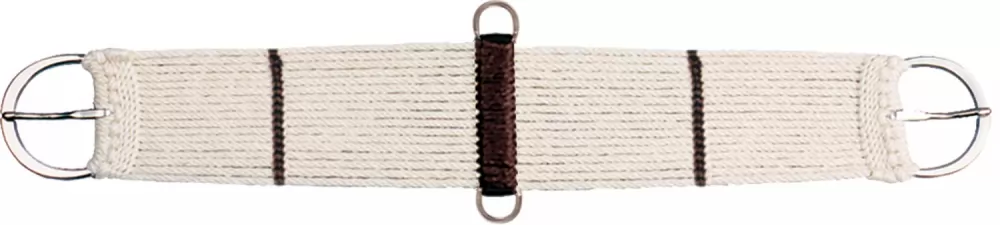 17-Strand natural wool blend cinch with wrapped nylon center and cross bars. 3″ Stainless steel flat buckles and 1″ stainless steel dees.