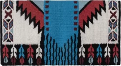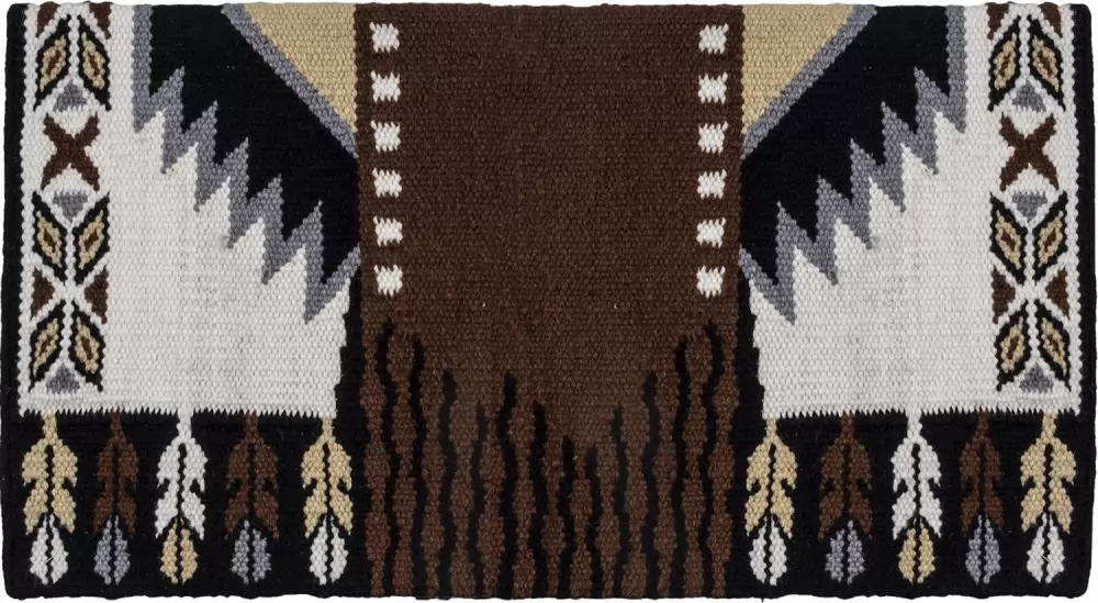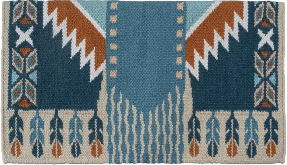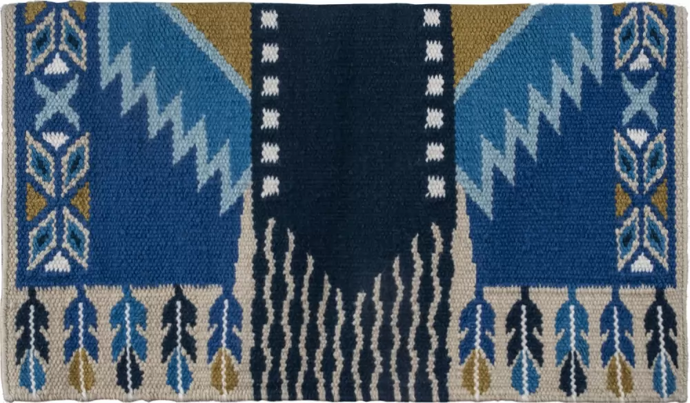 Nearly everyone who participates in western disciplines appreciates the value placed on the horse by the Native Americans of the Plains. We admire the painted symbols hand prints, ringed eyes and other marks that told a story of success and empowerment in battle. The Good Medicine Collection offers todays warrior the opportunity to saddle their horse with unique hand loomed 100% New Zealand wool blankets that feature the symbols that protected and empowered both horse and rider of the Plains over 100 years ago. Each Good Medicine is designed in the United States and hand loomed of 100% New Zealand wool.
