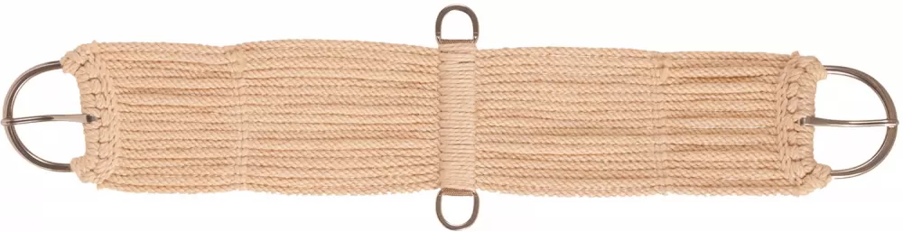 17-Strand Mohair blend cinch with nylon wrapped center, cross bars at each end and flat stainless steel buckles and stainless steel dees.