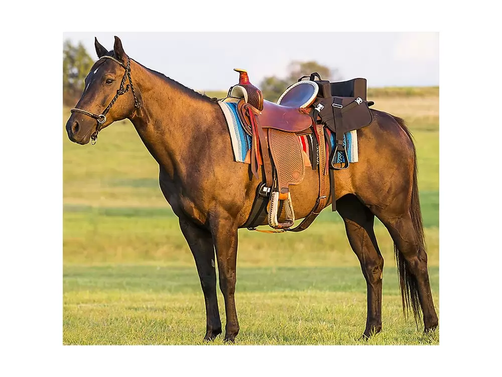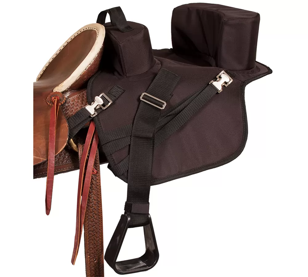 Mustangs Ride with Me Seat offers a comfortable and convenient way for junior riders to join in on the fun of Western riding. The Ride with Me seat is constructed of waterproof durable corudura material and has a heavily padded cantle and swell for a secure ride. Seat features an easy grip handle, adjustable stirrups and can accommodate up to a 50 lbs. rider. Four webbing straps with nickel plated clamps make attaching the Ride with Me to the back of most saddles a breeze. The two front straps loop through the adult saddles front Dee rings and then securely clamp the strap to keep in place. The two back straps attack to the adult saddles rear Dee rings and also clamp to secure. Seat size is 9″ and overall product is 21″ long x 34″ wide.