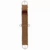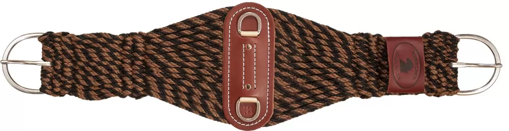 27-Strand double woven two tone rayon cinch with leather pocket and sewn leather reinforced center. Inset dee rings on the leather center keep snaps away from the horse. Cinch features 3″ flat stainless steel buckles and 1″ stainless steel dees.