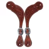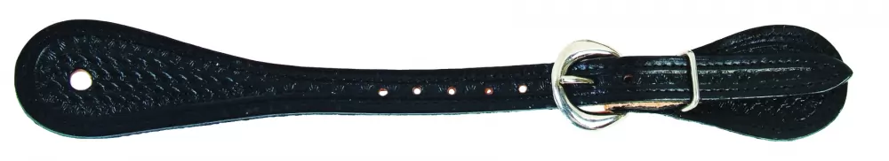 Basketweave tooled leather spur straps with 5/8 nickel plated buckle and loop.