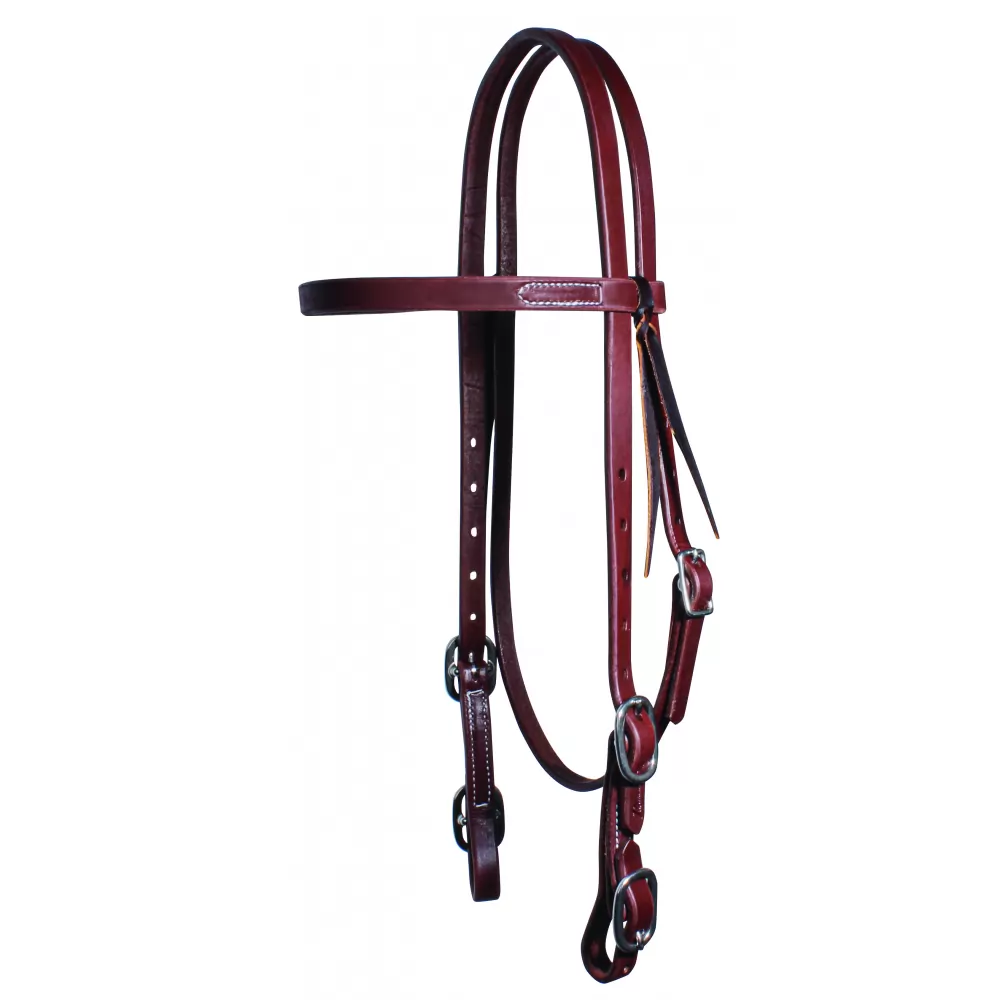 Bit changes are easy with our browband headstall made from 5/8 heavy oiled harness leather and stainless steel buckles that give long-lasting durability and a good feel right out of the box. Short cheek keeps the adjustment buckle out of the eye.