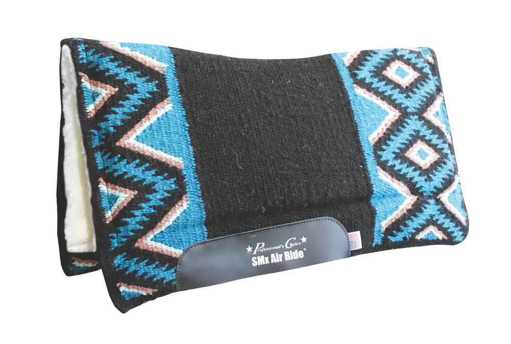 Developed from the horse’s back up, the Comfort-Fit SMx Air Ride Saddle Pad is contoured to follow the curve of the horse’s spine. As a result, the pad locks in place on the horses back, allowing full movement. The SMx 3/4 ” Air Ride core absorbs shock and improves saddle fit for ultimate equine comfort. The Air Ride core is made of a unique material found in the protective gear of professional human athletes for absorbing shock while allowing air flow to the skin, creating a natural cooling system that lowers the horses body temperature and slows the rate of fatigue.