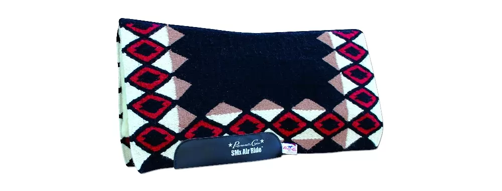 Developed from the horse’s back up, the Comfort-Fit SMx Air Ride Saddle Pad is contoured to follow the curve of the horse’s spine. As a result, the pad locks in place on the horses back, allowing full movement. The SMx 3/4 ” Air Ride core absorbs shock and improves saddle fit for ultimate equine comfort. The Air Ride core is made of a unique material found in the protective gear of professional human athletes for absorbing shock while allowing air flow to the skin, creating a natural cooling system that lowers the horses body temperature and slows the rate of fatigue.