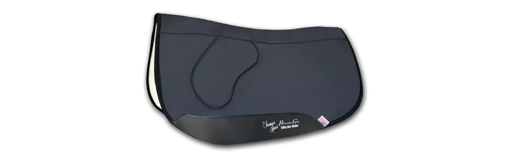 This pad combines the benefits of our breathable and shock-absorbent SMx Air Ride material with OrthoSport features to create an unrivaled barrel pad. Additional layers of SMx Air Ride material are strategically placed in the dished out areas behind the shoulders of horses with high withers and strong shoulders to create a greatly improved saddle fit from front to back. Additional 1/4 inch layers of SMx Air Ride material are also added down each side of the spine to relieve pressure from the spine and kidney areas while allowing additional airflow along the horses back. 60-Day money-back guarantee/one-year warranty or as required by law.