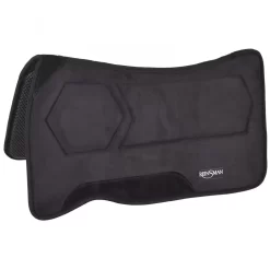 A viscoelastic hex cell at the wither molds to the shape of the horse, reducing pressure points caused by the bars of the saddle. This allows proper alignment of the bars along the horses back so that the bar pressure is equalized allowing unrestricted movement of the shoulders and increased range of motion. This memory foam compresses slightly so the bars of the saddle nest to minimize saddle roll. Tacky-Too material provides a nonslip grip while remaining soft, comfortable, and easy to clean. It won’t pinch hair and is breathable for long rides.