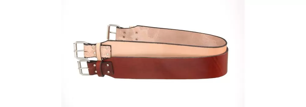 This great value single ply russet skirting leather tapers from 3″ to 1 3/4. Has shaped leather loops, and 1 3/4″ plated roller buckles.