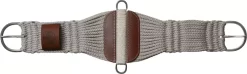 Shock foam girth with nylon backing and saddle felt lining sandwiched over a shock foam core. Stainless steel roller buckles