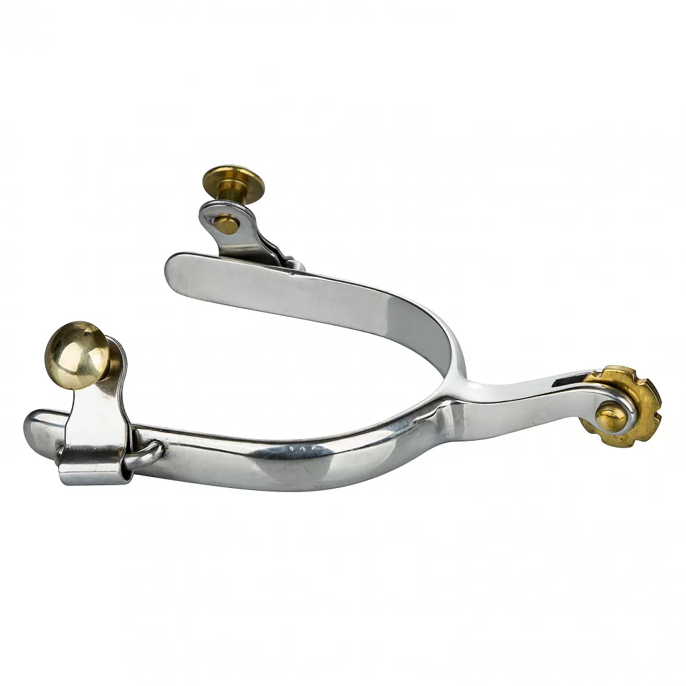 Stainless Steel Roping Spurs with 1/2″ band, solid brass buttons and 5/8″ solid brass 6 pt blunt rowel.