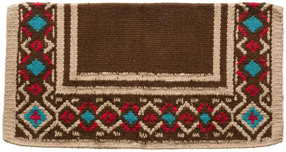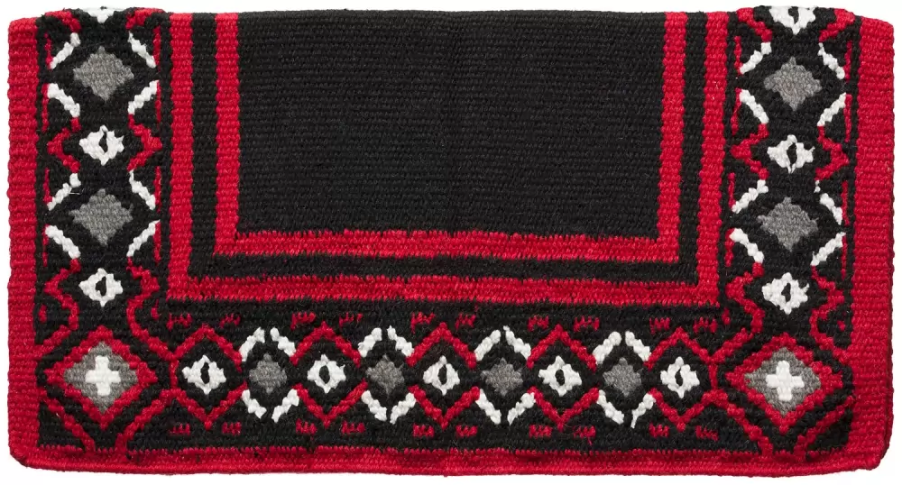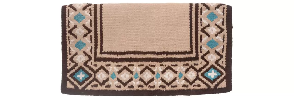 Fine, heavyweight 100% wool saddle blanket with hand woven, eye-catching basket stamp design.
