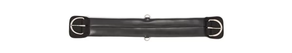 A durable neoprene girth. Great for training and the show ring. Washes easily preventing the spread of fungus and stops galling. Holds the saddle in place better. 4 wide 4 ply nylon web center covered in neoprene. Nickle plated hardware.