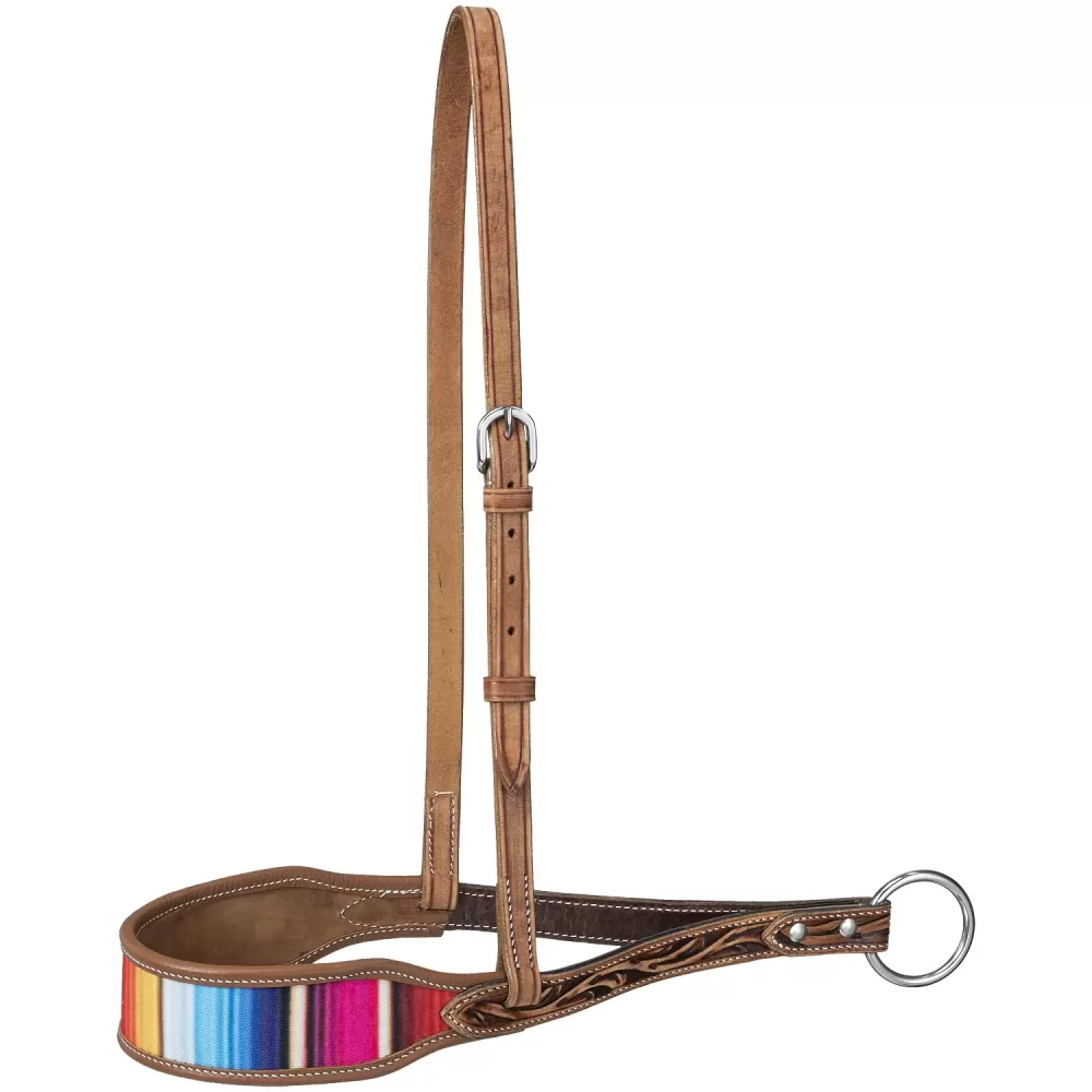 Add some color to your tack with theTough 1 Serape Print Noseband! Featuring a stylish serape print design along the front of the noseband, leather tooling adorns the back of the noseband. A smooth leather crown sits nicely against your horse’s poll while the stainless steel buckle allows for easy adjustments. The addition of a tie-down strap keeps your horse’s head in perfect position while in work.