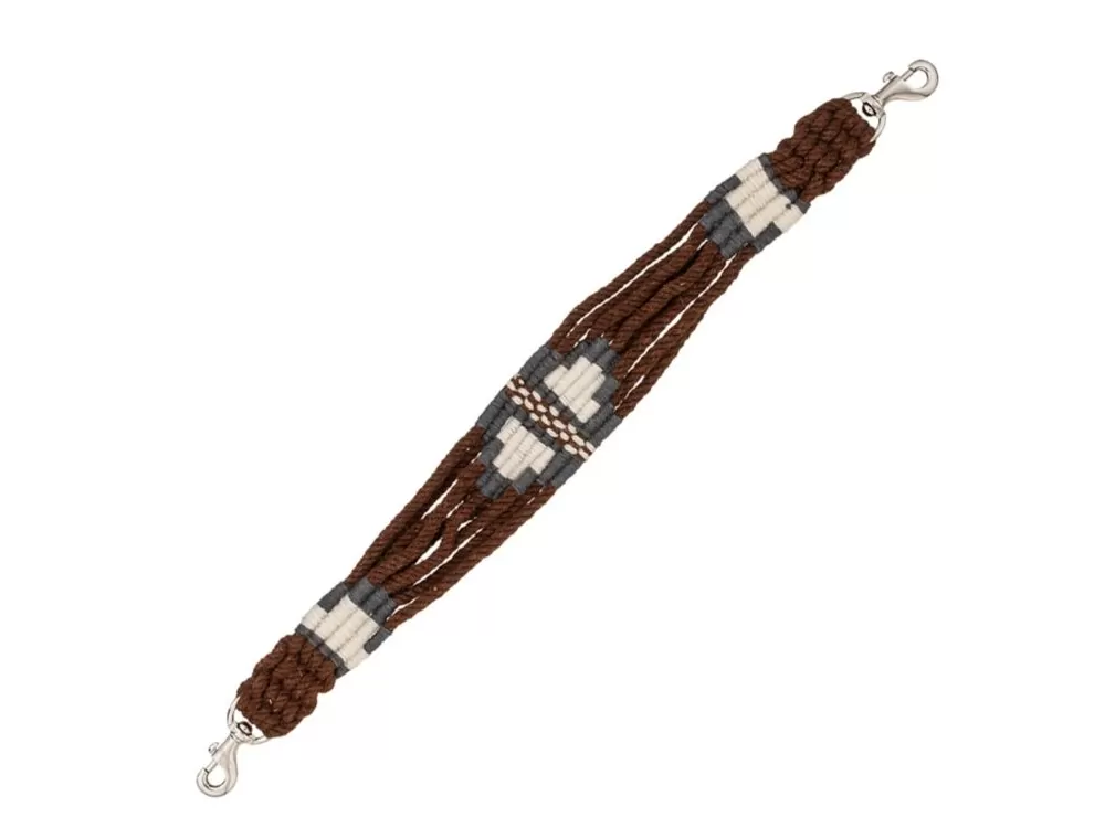 This wither strap is made of hand twisted wool string for a more affordable mohair look. Easily clips onto the breastcollar to keep it proper position for unrestricted movement. Available in a variety of bold and unique color combinations and patterns.
