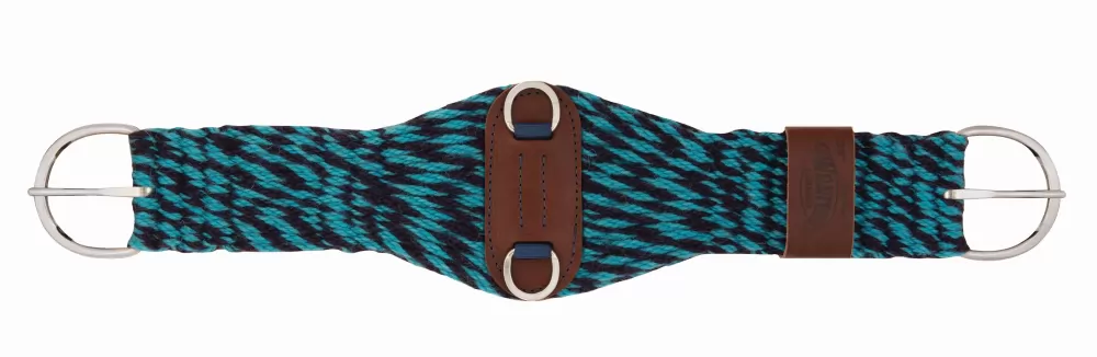 Handcrafted by craftspeople in Holmes County, Ohio, this premium quality cinch is made from 1% mohair from Angora goats. This mohair offers a soft, luxurious feel, a rich luster and outstanding durability. Known as “the diamond fiber”, mohair can be twisted and bent without causing damage adding to the dependability and durability of this cinch. Mohair wicks away moisture for added comfort to your horse and for maximum breathability. While mohair cinches are known for stretching for a perfect fit, they always return to their original size due to the fiber’s elasticity. This cinch also offers easy care! Dust and dirt can generally be removed by shaking and brushing the cinch. Roper style features a sunset harness leather center accent and off billet holder. Leather is stuffed with extra tallows and oils that help prevent it from absorbing moisture and sweat that causes traditional skirting leather to become stiff and gall your horse. Non-rust stainless steel hardware.