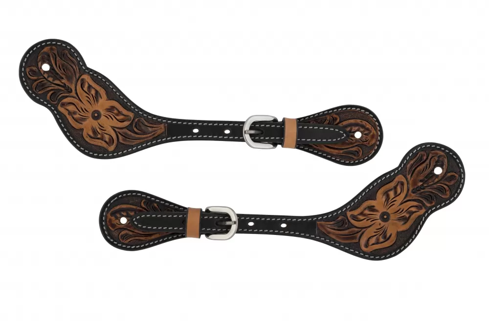 Constructed from light oiled leather with an antiqued finish that highlights the beautiful floral tooling, these spur straps offer great quality at a great price. Non-rust stainless steel hardware.