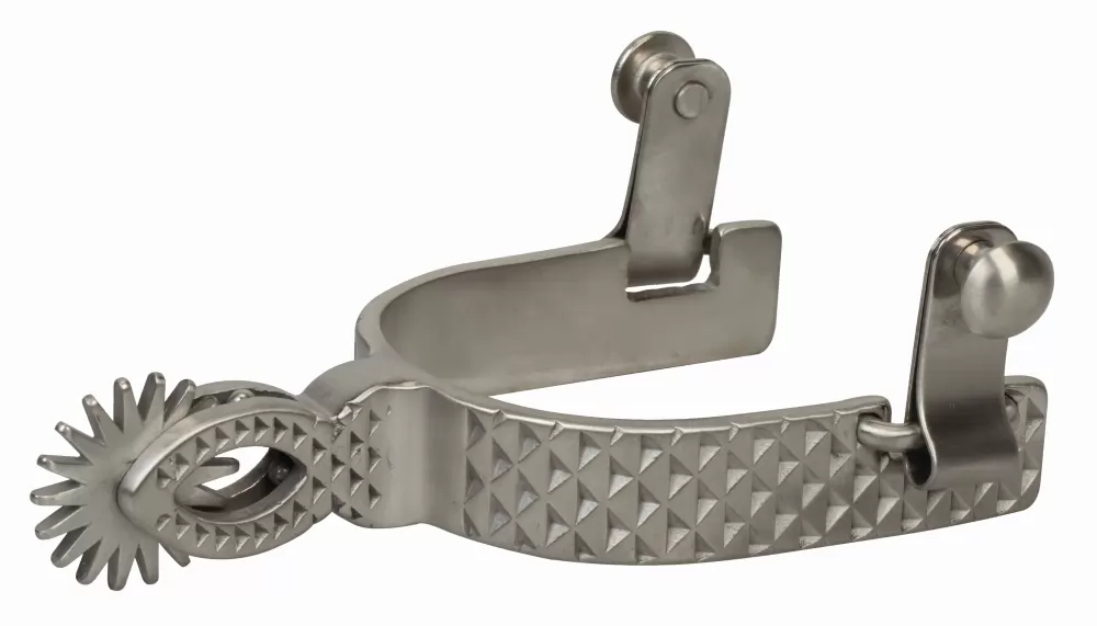Rasp chihuahua spur in a classic stainless steel finish. Feature 1-3/4″ shank, 3/4″ band and 18 point rowel.