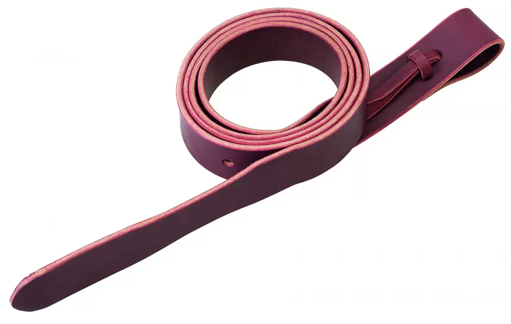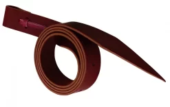 Top quality burgundy latigo leather style comes with burgundy alum tanned leather ties to attach to saddle. 1 1/2″ x 60″ with Holes