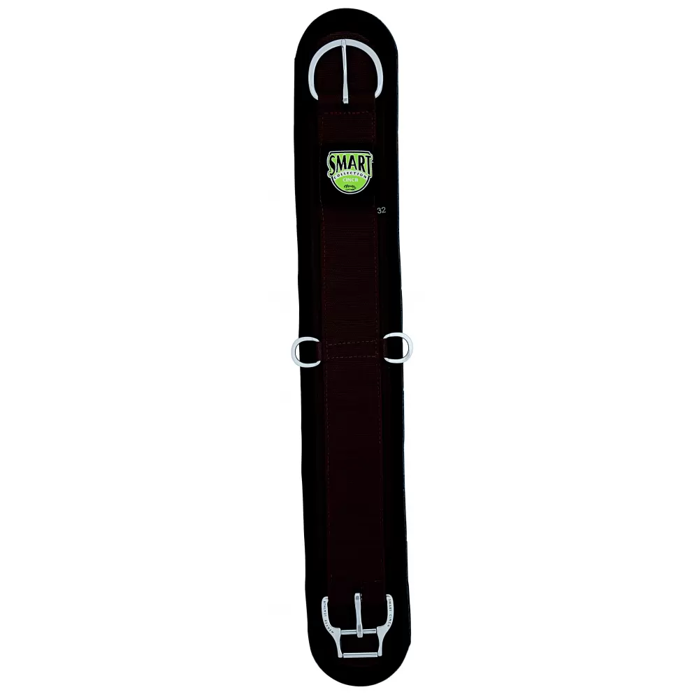 Now featuring the new and improved Roll Snug Cinch Buckle, the Smart Cinch is now smarter than ever! The innovative, patented buckle’s expertly-designed roller system now has less play so your latigo rolls more smoothly than ever. Designed with a contoured lip that keeps your latigo securely positioned, the buckle helps guide you for a straight pull every time. It’s modern, sleek design also features a shaped buckle tongue with a hooked tip that helps keep your latigo locked down in place for added security. A popular choice for the trail, this cinch features a shock-absorbing neoprene backer that withstands the elements and moves with your horse for extra comfort. The poly webbing detaches from the neoprene for easy cleaning. Nylon off billet holder. Stainless steel hardware. U.S. Patent #6,688,086.