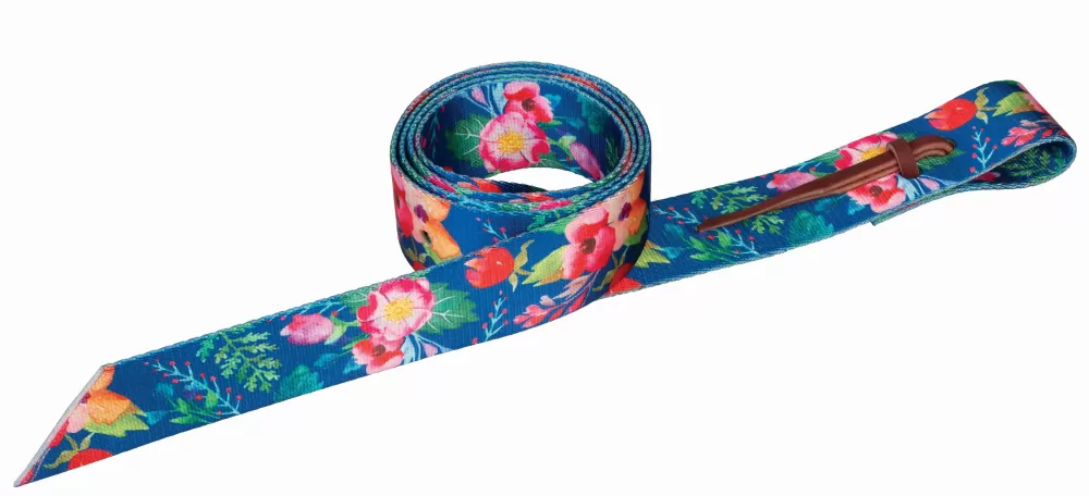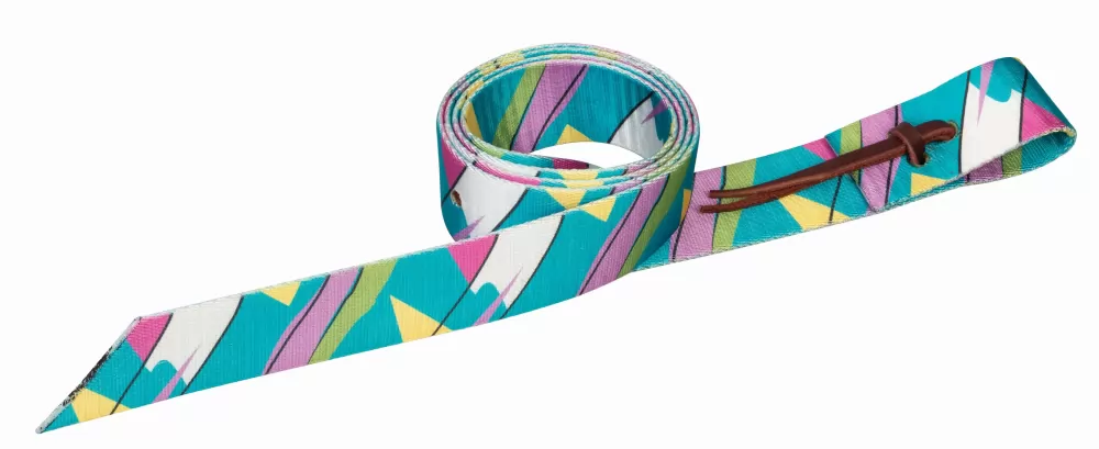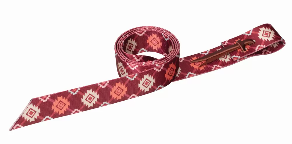 For a reliable fit when tightening your horse’s cinch, choose this patterned polyester tie strap. Features holes for buckling and a burgundy alum tanned leather tie. Measures 1-3/4″ x 60″.